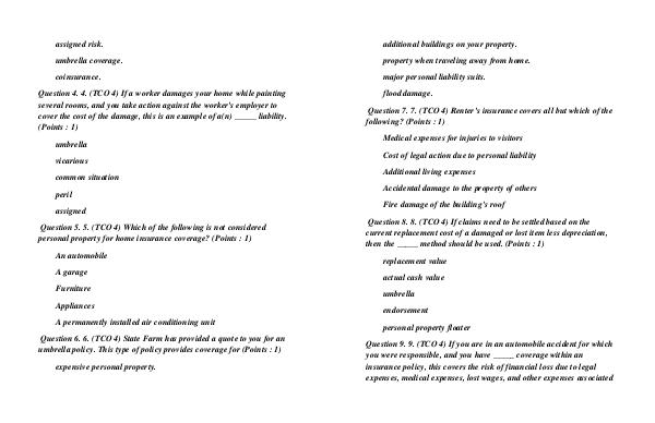 Question 7. 7. (TCO 4) Renter's insurance covers all but which of the