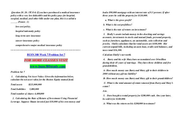 Question 20. 20. (TCO 4) If you have purchased a medical insurance