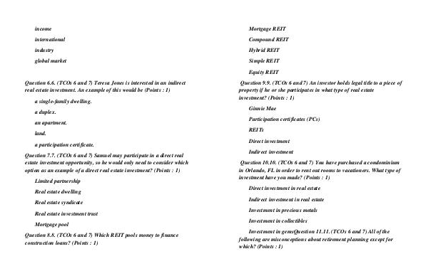 Question 10.10. (TCOs 6 and 7) You have purchased a condominium