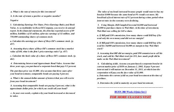 b. Determine the yield to maturity on your bond investment.--------------------------------------------------------------------------------------- BUSN 380 Week 4 Quiz Set 1 FOR MORE CLASSES VISIT