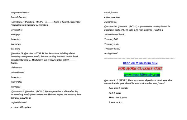 Question 17. Question : (TCO 5) A _____ bond is backed only by the