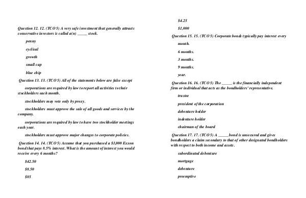 Question 15. 15. (TCO 5) Corporate bonds typically pay interest every