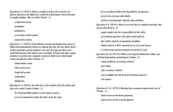 Question 8. 8. (TCO 1) In order for a class action suit to be taken and