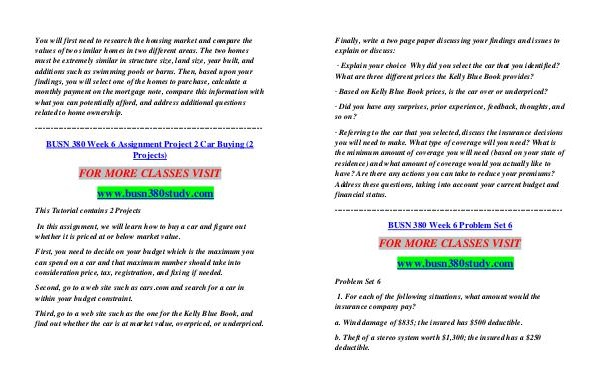 BUSN 380 Week 6 Assignment Project 2 Car Buying (2