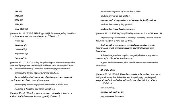 Question 20. 20. (TCO 4) If you have purchased a medical insurance