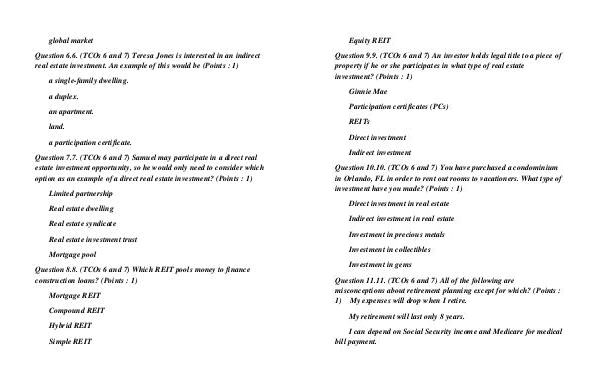 Question 10.10.( TCOs 6 and 7) You have purchased a condominium in Orlando, FL in order to rent out rooms to vacationers. What type of investment have you made?( Points: 1)
