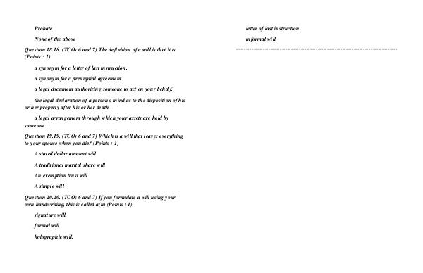 Question 20.20. (TCOs 6 and 7) If you formulate a will using your