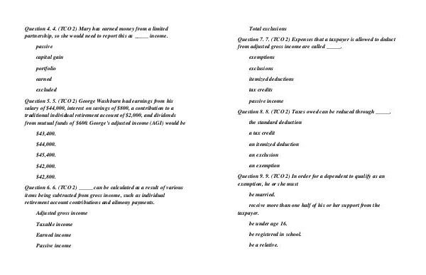 Question 8. 8. (TCO 2) Taxes owed can be reduced through _____.