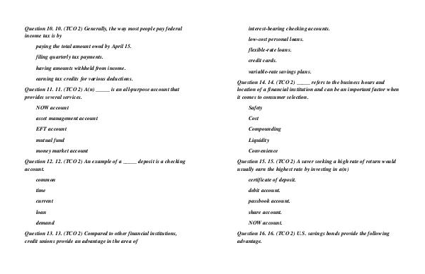 Question 16. 16. (TCO 2) U.S. savings bonds provide the following