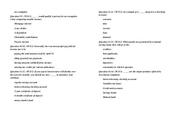 Question 12.12. (TCO 2) An example of a _____ deposit is a checking