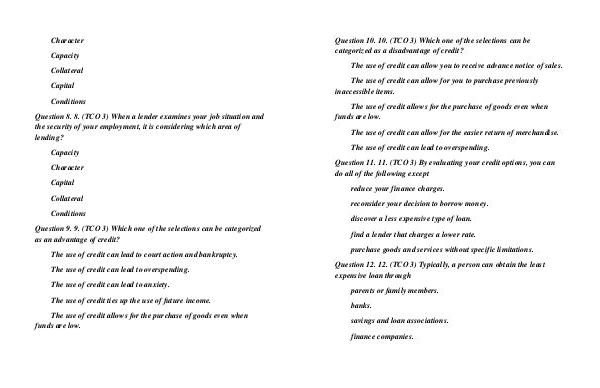 Question 11. 11. (TCO 3) By evaluating your credit options, you can