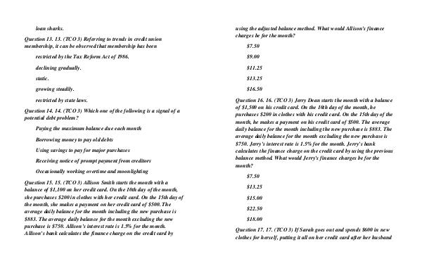 she purchases $200 in clothes with her credit card. On the 15th day of