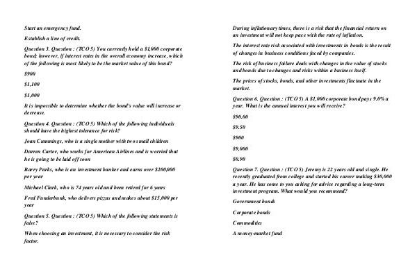 Question 3. Question : (TCO 5) You currently hold a $1,000 corporate