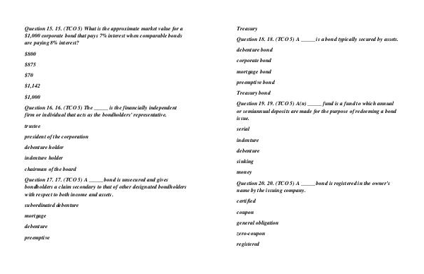 Question 18. 18. (TCO 5) A _____ is a bond typically secured by assets.