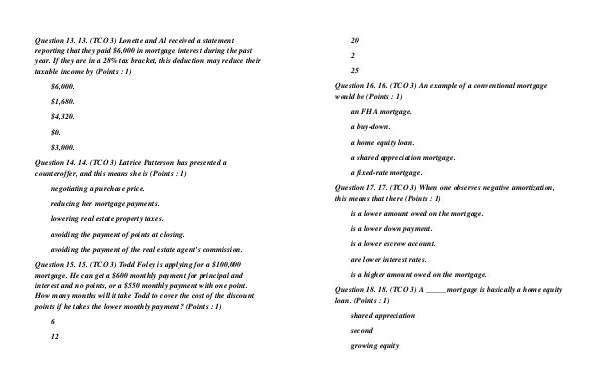 Question 15. 15. (TCO 3) Todd Foley is applying for a $100,000
