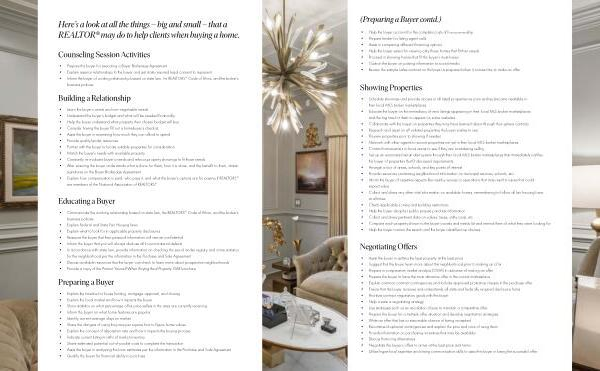 Many home buyers are not aware of the true value that a REALTOR ® provides during a real estate transaction . A multitude of important services and steps required in a real estate transaction are carried out by the REALTOR ® or the brokerage staff . Most of these steps have traditionally been viewed simply as part of the professional responsibilities to the client . But , without them , the transaction could be placed in jeopardy .
