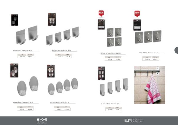 PERCHA METAL ADHESIVA X4 PCS REF. 011026 CAJA. 12/144 CUELGA PAÑOS INOX “LUXE” REF. 033051 CAJA. 12/144 PERCHA INOX ADHESIVA X3 PCS REF. 011028 CAJA. 12/144