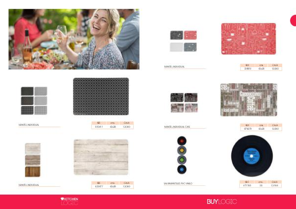 MANTEL INDIVIDUAL MANTEL INDIVIDUAL CAFE SALVAMANTELES PVC VINILO REF. cms. CAJA 339851 43x28 12/240 REF. cms. CAJA 875679 43x28 12/240 REF. cms. CAJA 471748 38 12/144