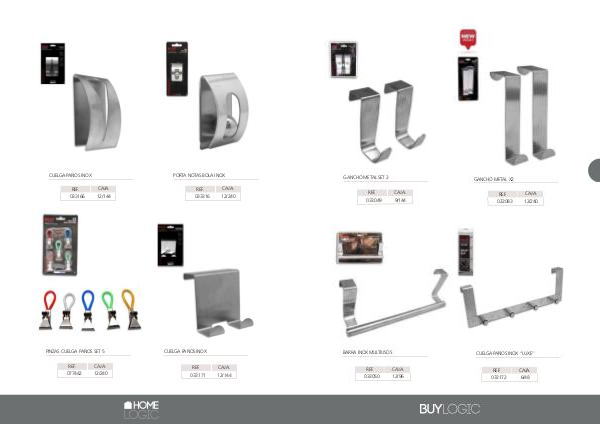 GANCHO METAL SET 2 REF. 033049 GANCHO METAL X2 CAJA. 9/144 BARRA INOX MULTIUSOS REF. 033050 REF. 022083 CAJA. 12/240 CUELGA PAÑOS INOX “LUXE” CAJA. 12/96 REF. 033172 CAJA. 6/48