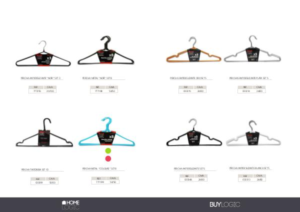 PERCHA ANTIDESLIZANTE “NOIR” SET 3 REF. 777255 CAJA. 20/100 033091 REF. 777198 CAJA. 50/50 PERCHA METAL “COLOURS” SET 8 PERCHA TINTORERA SET 10 REF. PERCHA METAL “NOIR” SET 8 CAJA. 50/50 REF. 777199 CAJA. 50/50