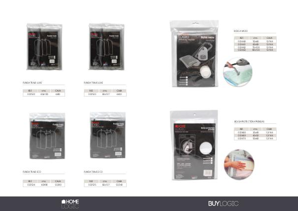 BOLSA VACIO REF. cms. CAJA 033460 033461 033462 033463 50x60 60x80 70x100 80x130 12/144 12/144 12/144 12/144 BOLSA PROTECTORA PRENDAS REF. cms. CAJA 033468 033469 033470 30x40 40x50 50x60 12/144 12/144 12/144