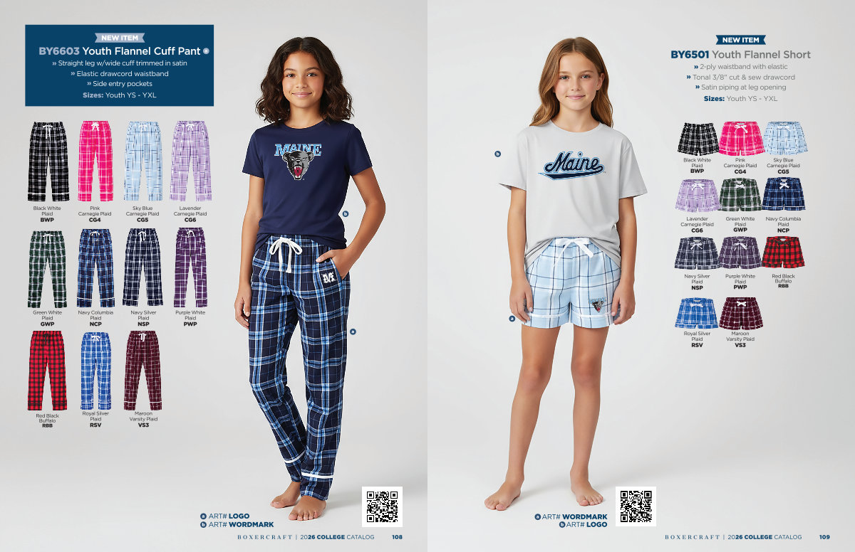NEW ITEM BY6501 Youth Flannel Short » 2-ply waistband with elastic » Tonal 3 / 8 " cut & sew drawcord » Satin piping at leg opening Sizes: Youth YS- YXL