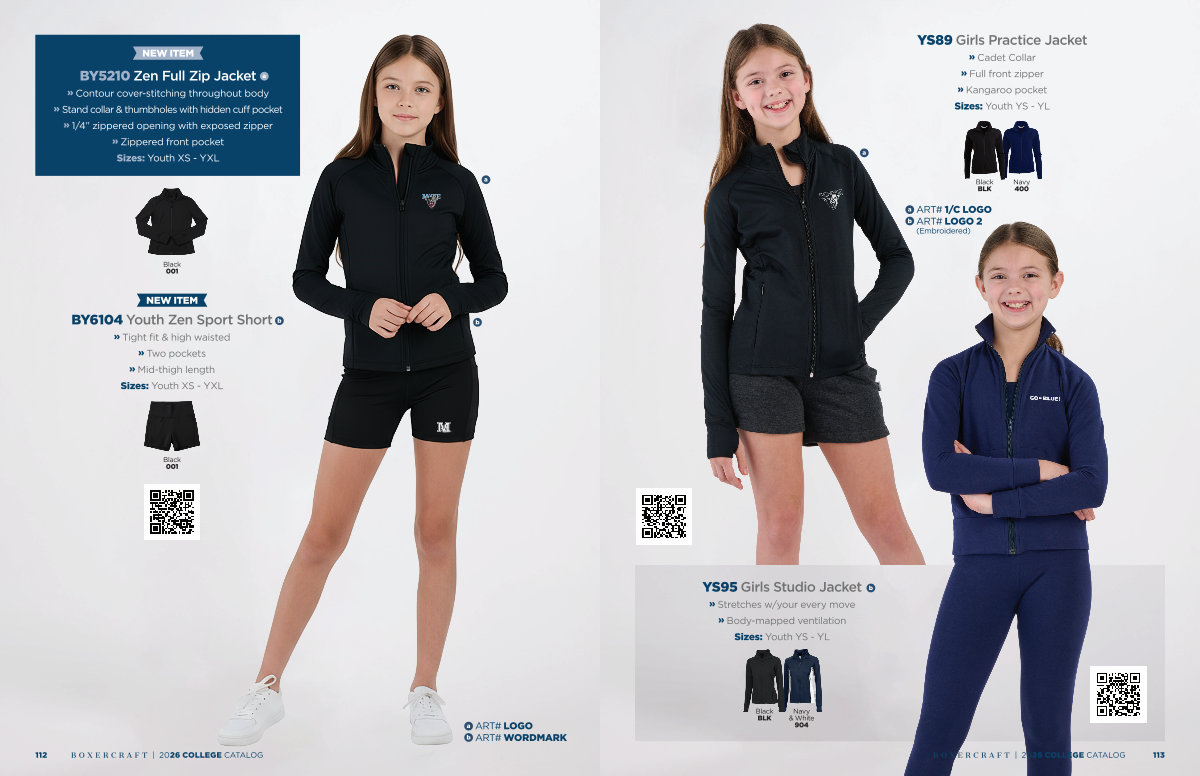 YS89 Girls Practice Jacket » Cadet Collar » Full front zipper » Kangaroo pocket Sizes: Youth YS- YL a