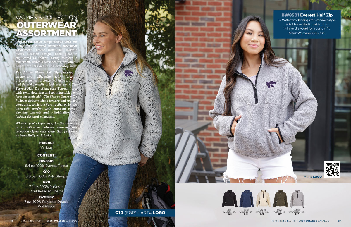 BW8501 Everest Half Zip » Matte tonal bindings for standout style » Fold-over elasticized bottom » Inner drawcord for a custom fit Sizes: Women ' s XXS- 2XL