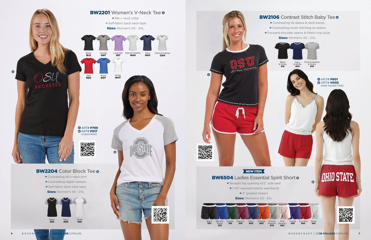BW2106 Contrast Stitch Baby Tee » Contrasting rib sleeve & neck bands » Contrasting cover stitching on seams » Forward shoulder seams & fitted crop style Sizes: Women’ s XS- 2XL a