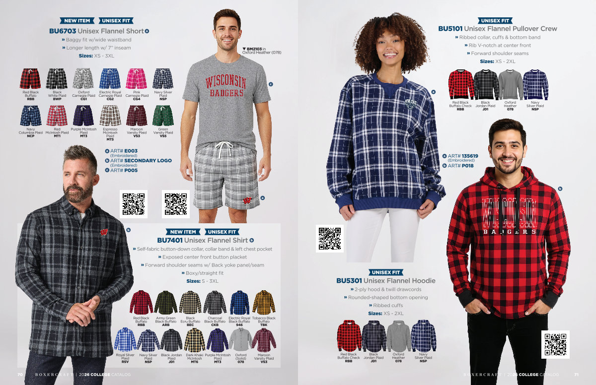 UNISEX FIT BU5101 Unisex Flannel Pullover Crew » Ribbed collar, cuffs & bottom band » Rib V-notch at center front » Forward shoulder seams Sizes: XS- 2XL
