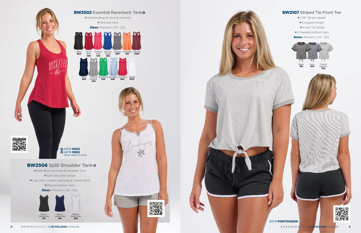 BW2502 Essential Racerback Tank » Self-binding at neck & armhole » Shirttail hem Sizes: Women’ s XS- 2XL a