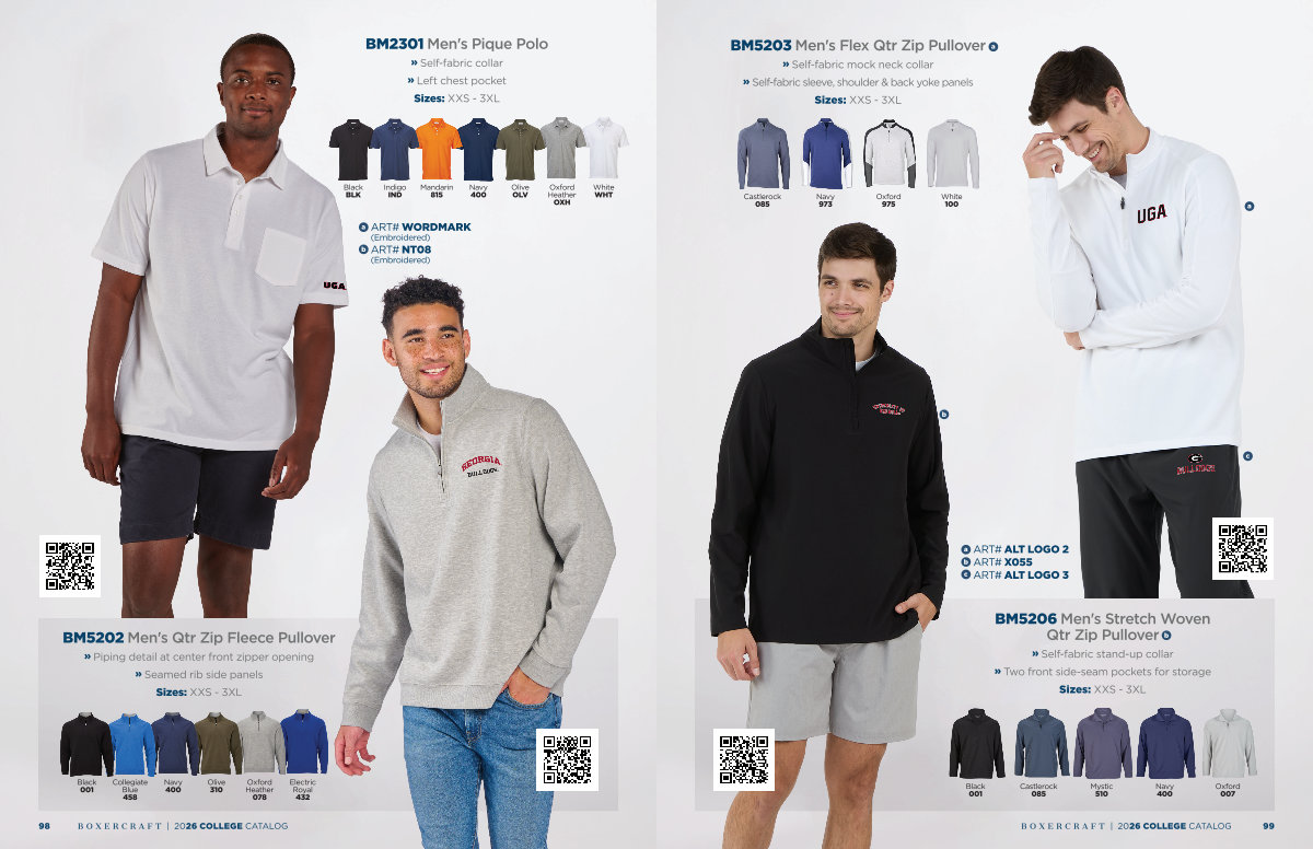 BM5203 Men ' s Flex Qtr Zip Pullover » Self-fabric mock neck collar » Self-fabric sleeve, shoulder & back yoke panels Sizes: XXS- 3XL