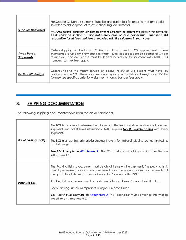 KeHE Inbound Routing Guide Version 15.0 November 2025 Page 6 of 22