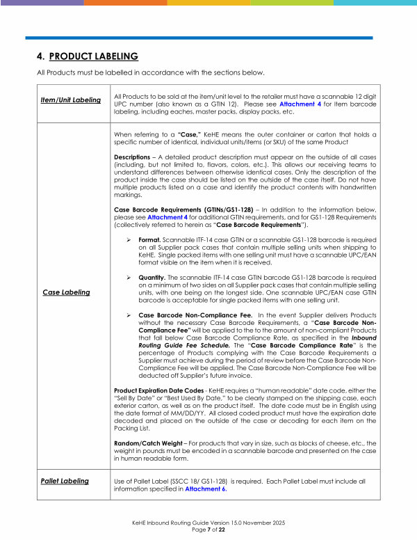 KeHE Inbound Routing Guide Version 15.0 November 2025 Page 7 of 22