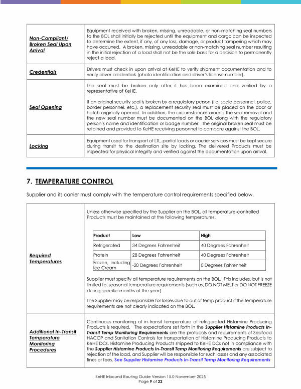 KeHE Inbound Routing Guide Version 15.0 November 2025 Page 9 of 22