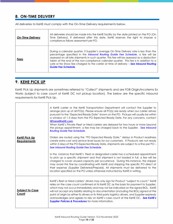 KeHE Inbound Routing Guide Version 15.0 November 2025 Page 10 of 22