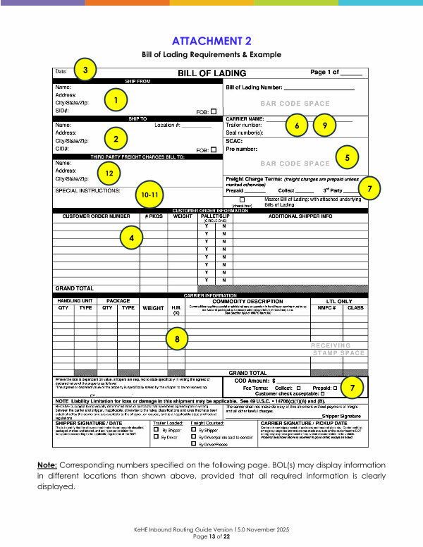 KeHE Inbound Routing Guide Version 15.0 November 2025 Page 13 of 22