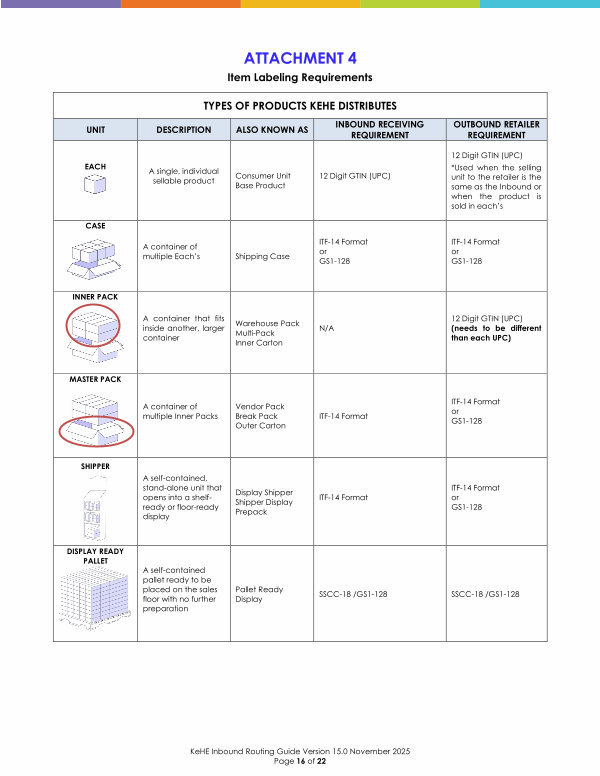 * Used when the selling unit to the retailer is the same as the Inbound or when the product is sold in each’ s