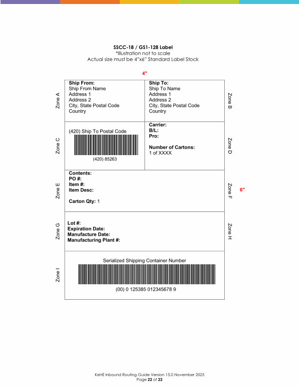 KeHE Inbound Routing Guide Version 15.0 November 2025 Page 22 of 22 |