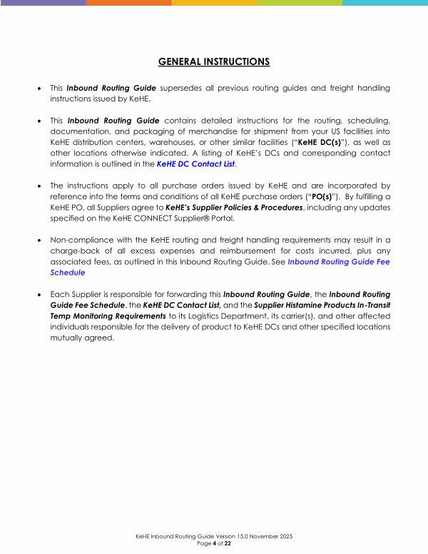 KeHE Inbound Routing Guide Version 15.0 November 2025 Page 4 of 22