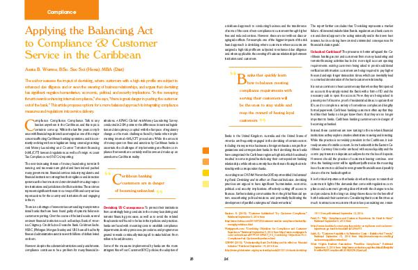 Unbanked Caribbean? The pressures to better safeguard the Caribbean banking sector and customers from money laundering and terrorist financing activities has led to more rigid account opening requirements, existing customers being asked to provide additional verification information; customers are being required to pay higher fees and undergo longer transaction times, which can inevitably lead to a marked deterioration of the bank-customer relationship.