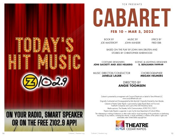 Cabaret at Theatre Cedar Rapids is sponsored by Cedar Rapids Bank and Trust and TrueNorth Companies and is part of the CRST Broadway Series .