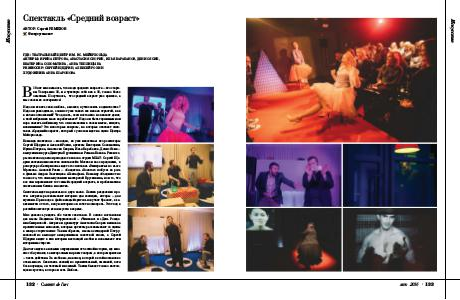 Надо ли искать свою любовь, а может, лучше жить в одиночестве? Надо ли разводиться, если нет уже такого же накала страстей, как в начале отношений? Что делать, если постоянно не хватает денег, а твой избранник мало зарабатывает? Надо ли быть терпимым или пора сказать любимому, что он невыносим в своем нытье, нищете, невнимании? Это некоторые вопросы, на которые отвечает спектакль « Средний возраст », который с успехом идет на сцене Центра Мейерхольда.