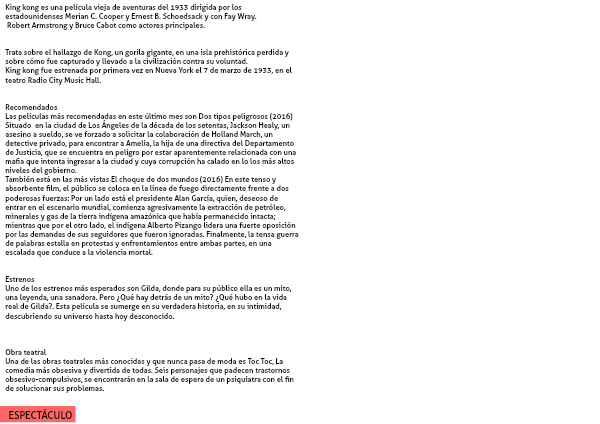 Las películas más recomendadas en este último mes son Dos tipos peligrosos (2016)Situado en la ciudad de Los Ángeles de la década de los setentas, Jackson Healy, un asesino a sueldo, se ve forzado a solicitar la colaboración de Holland March, un detective privado, para encontrar a Amelia, la hija de una directiva del Departamento de Justicia, que se encuentra en peligro por estar aparentemente relacionada con una mafia que intenta ingresar a la ciudad y cuya corrupción ha calado en lo los más altos niveles del gobierno.
