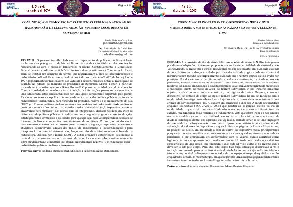 Palavras-chave: Homem elegante. Dispositivo. Moda. Revista Elegante.