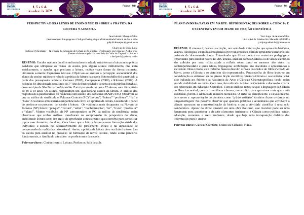 Palavras-chave: Conhecimento; Leitura; Professor; Sala de aula.