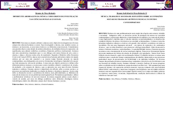 Palavras-chave: Arte, música, músicos, ciências humanas.