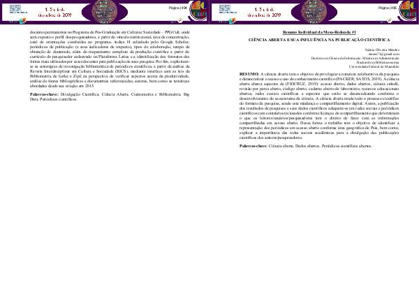 Palavras-chave: Divulgação Científica. Ciência Aberta. Cientometria e Bibliometria. Big