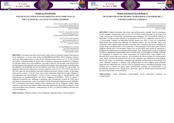 RESUMO: O objetivo da minha fala é fazer uma reflexão sobre a entrada dos povos indígenas