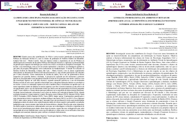 Palavras-chave: Gamificação e Ensino Superior. Tecnologias digitais e Políticas da Educação Inclusiva